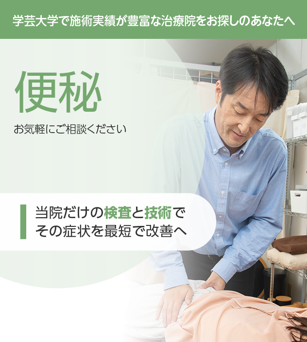 20年以上の施術経験を持ち、便秘の改善を得意とする院長が、検査から施術まで責任をもって担当しますのでご安心ください。