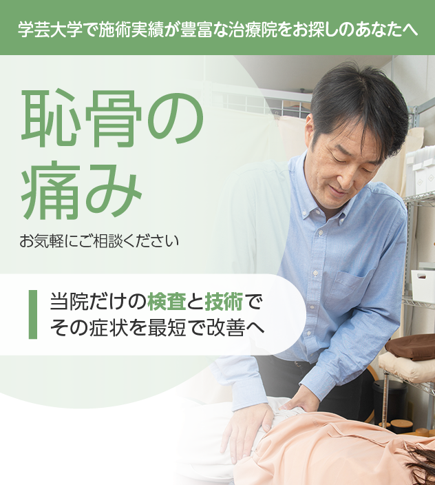 開院以来、恥骨の痛みでお困りの方を数多く施術してきました。