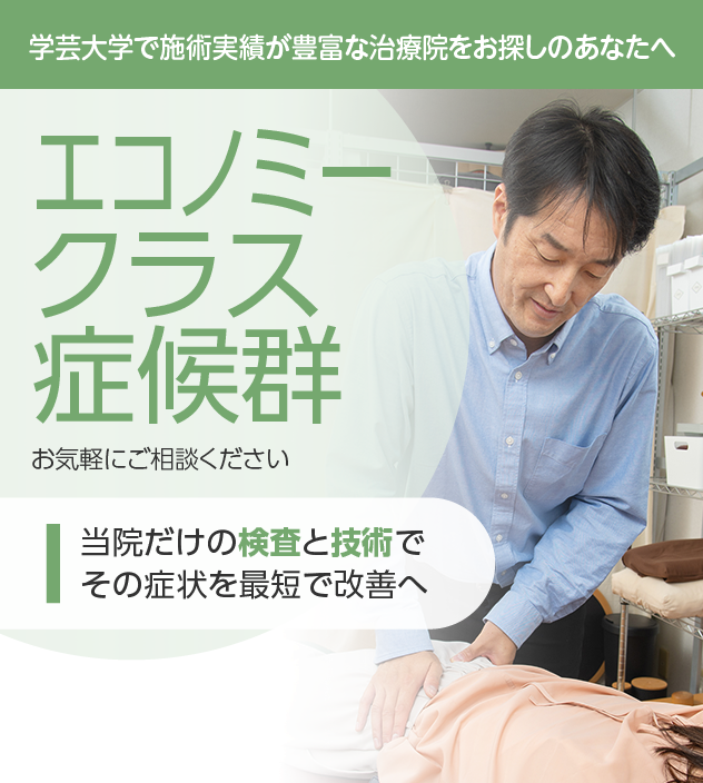 開院以来、エコノミークラス症候群でお困りの方を数多く施術してきました。