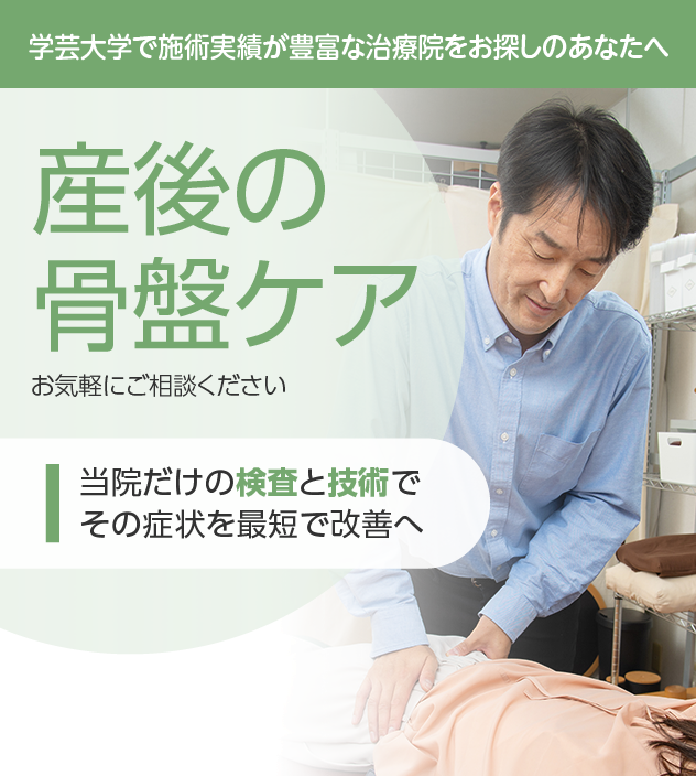 病院や他の治療院で改善しなかったとしても、諦めないでください。産後の骨盤ケアでお悩みなら、充実した検査と豊富な改善実績を誇る当院に、ぜひお任せください。